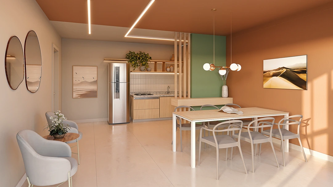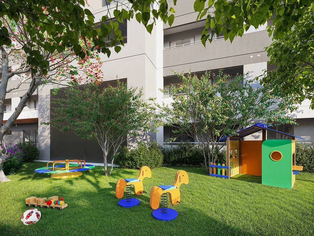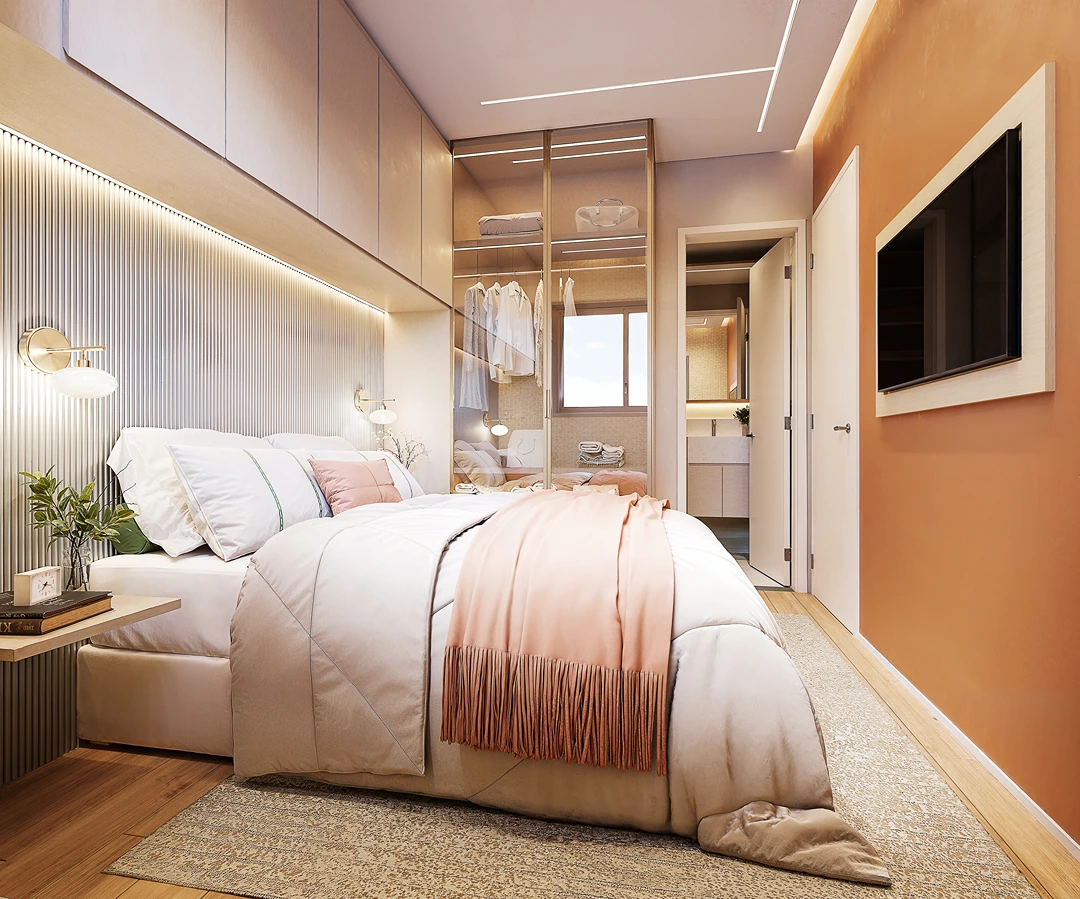 *Imagens meramente ilustrativas. Os empreendimentos serão entregues com os materiais de acabamento e especificações constantes no memorial de incorporação e projetos aprovados, os quais prevalecem sobre as concepções artísticas acima. Por se tratar de imóvel a ser construído, as características gerais poderão sofrer alteração sem aviso prévio. O paisagismo é meramente ilustrativo e não faz parte do projeto. Mobiliário meramente ilustrativo e não faz parte do projeto, salvo previsão específica no memorial de incorporação. Para mais informações, consulte um corretor Emccamp.